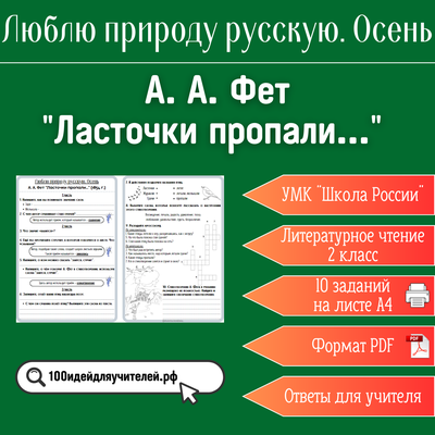 цифровой товар цифровой товар Рабочий лист. 2 класс. А. А. Фет "Ласточки пропали...". Раздел "Люблю природу русскую. Осень" 50 ₽ В КОРЗИНУ В КОРЗИНУ Поделиться