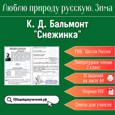 цифровой товар цифровой товар Рабочий лист. 2 класс. К. Д. Бальмонт "Снежинка". Раздел "Люблю природу русскую. Зима" 50 ₽ В КОРЗИНУ В КОРЗИНУ Поделиться