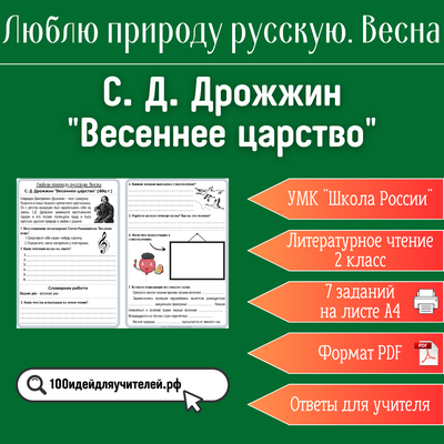 цифровой товар цифровой товар Рабочий лист. 2 класс. С. Д. Дрожжин "Весеннее царство". Раздел "Люблю природу русскую. Весна" 50 ₽ В КОРЗИНУ В КОРЗИНУ Поделиться