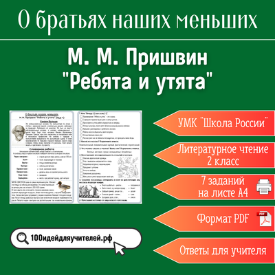 цифровой товар цифровой товар Рабочий лист. 2 класс. М. М. Пришвин "Ребята и утята". Раздел "О братьях наших меньших" 50 ₽ В КОРЗИНУ В КОРЗИНУ Поделиться