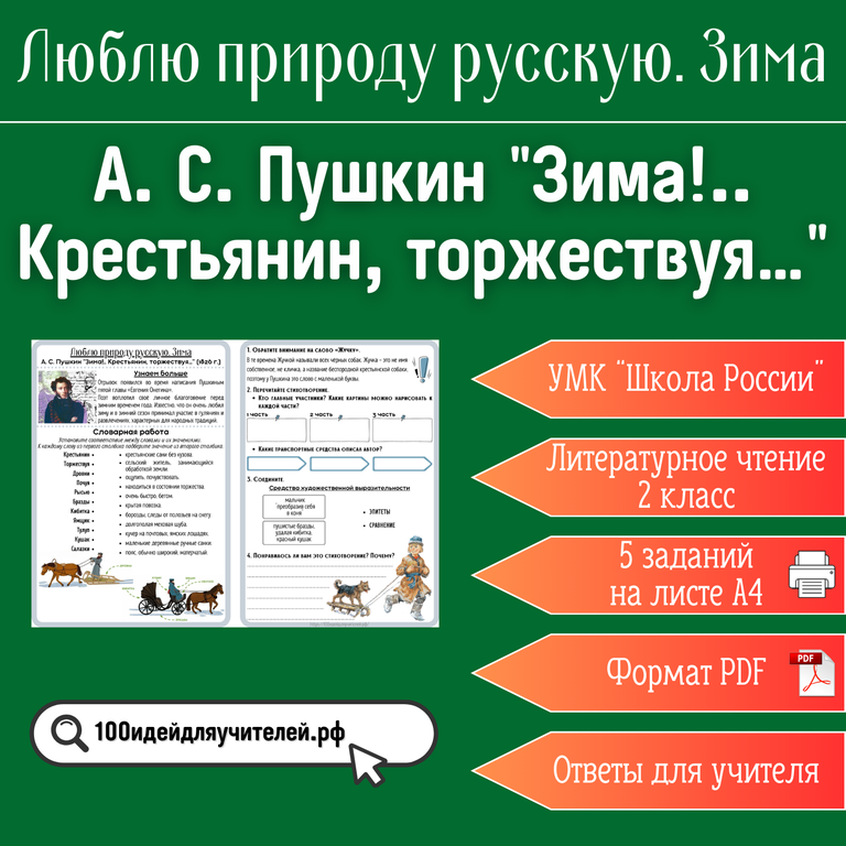 цифровой товар цифровой товар Рабочий лист. 2 класс. А. С. Пушкин "Зима!.. Крестьянин, торжествуя…". Раздел "Люблю природу русскую. Зима" 50 ₽ В КОРЗИНУ В КОРЗИНУ Поделиться