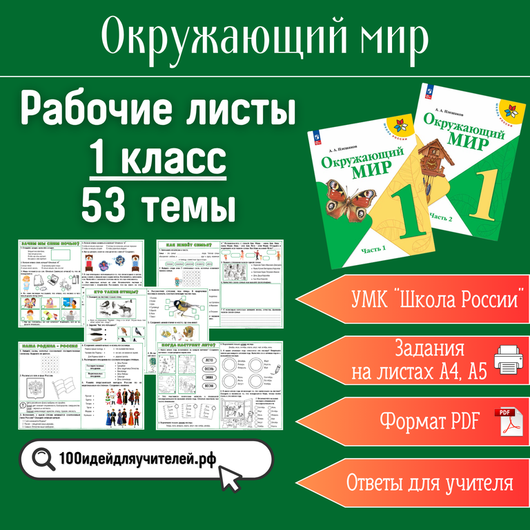 цифровой товар цифровой товар Сборник рабочих листов по окружающему миру (1 класс, 53 темы) 1 399 ₽ 2 255 ₽ В КОРЗИНУ В КОРЗИНУ Поделиться С этим товаром покупаютцифровой товарСборник рабочих листов по окружающему миру (2 класс, 49 темы) 1 399 ₽ 2 325 ₽В КОРЗИНУцифровой товарСборник рабочих листов по окружающему миру (3 класс, 52 темы) 1 399 ₽ 2 330 ₽В КОРЗИНУцифровой товарСборник рабочих листов по окружающему миру (4 класс, 51 тема) 1 399 ₽ 2 605 ₽В КОРЗИНУцифровой товарСборник рабочих листов по литературному чтению (1 класс, 37 тем) 899 ₽ 1 450 ₽В КОРЗИНУ
