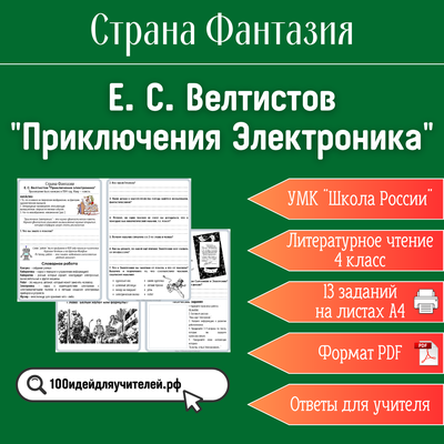 цифровой товар цифровой товар Рабочий лист. 4 класс. Е. С. Велтистов "Приключения Электроника". Раздел "Страна Фантазия 75 ₽ В КОРЗИНУ В КОРЗИНУ Поделиться