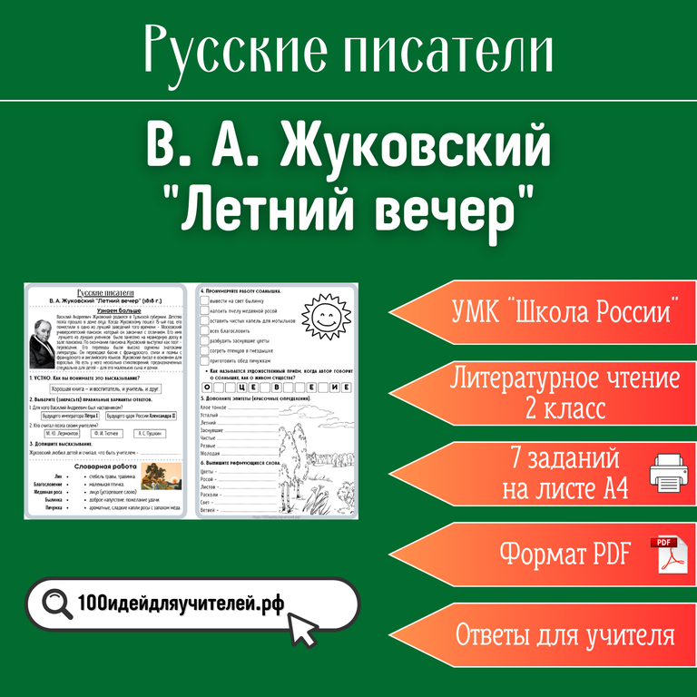 цифровой товар цифровой товар Рабочий лист. 2 класс. В. А. Жуковский "Летний вечер". Раздел "Русские писатели" 50 ₽ В КОРЗИНУ В КОРЗИНУ Поделиться